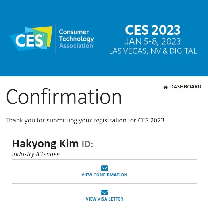 그래서, 9월 14일에는 CES 2023 사전 등록 안내 메일을 받자마자 등록을 했습니다. 정확한 날짜는 홈페이지에 가봐야 하겠지만, 아마 10월 10일 부근까지는 무료로 등록이 가능한 것 같습니다. 그 이후에는 유료로 전환이 되는데요, 아마 최대 300달러까지 내야 하는 걸로 알고 있습니다. 요즘 환율 고려하면 43만원 정도 되는 돈이니 서두를 필요가 있습니다. 물론, 여행사를 통해 패키지로 가는 경우에는 여행사가 단체 등록을 이용하기 때문에 등록비를 면제받을 수 있습니다.