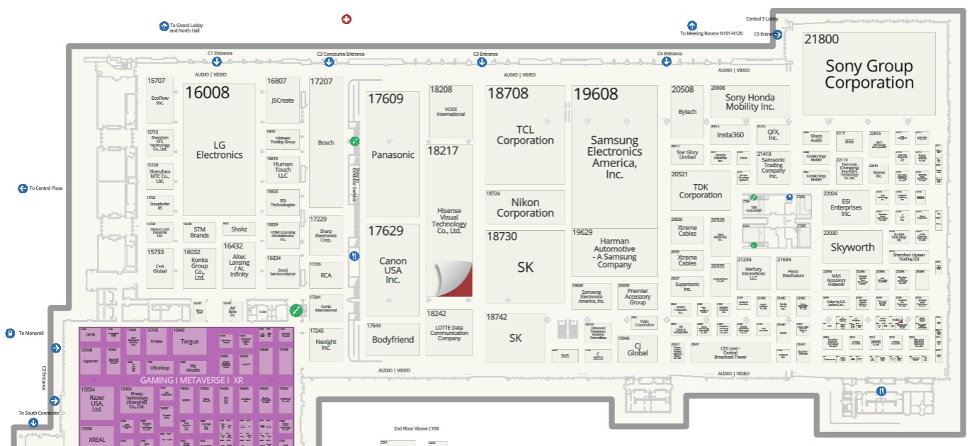 위 이미지는 전체 행사장의 플로어 플랜입니다. 각 구역(Tech East, West, South)에 대한 큰 이미지는 이 링크(1)에서 확인하실 수 있구요, 개별 위치는 이 링크(2) 에서 확인하실 수 있습니다. 특히 링크(2) 에서는 전시 공간 별로, 층별로 부스 배치도를 확인할 수 있으며, 기업 이름이나 전시 분야를 중심으로 관심 있는 기업의 위치를 확인하실 수 있습니다. 이왕이면 Tech East의 LVCC Central, LVCC West 이런 식으로 한 건물 단위로 관람을 하시는 것이 이동 시간을 최소화 할 수 있어서 좋습니다.
